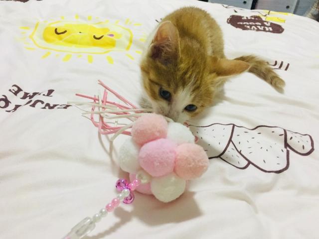 剛到家的金條看著(zhù)好小,但是真是淘氣,送給女朋友的花束和我的電腦都成了它的玩物